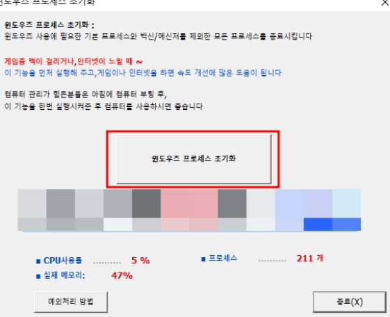 9. 그런 다음 윈도우즈 프로세스 초기화 버튼을 클릭합니다