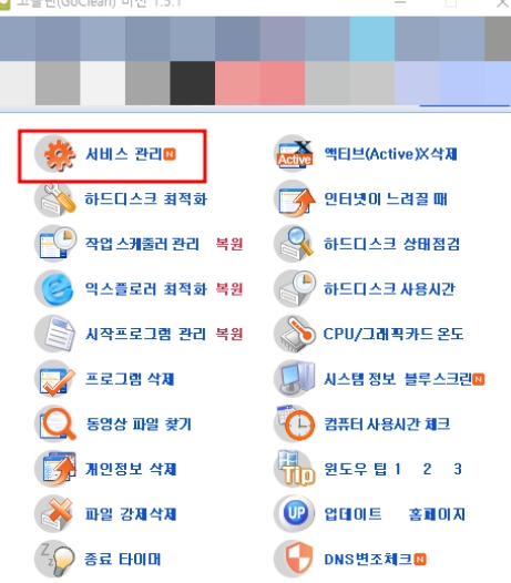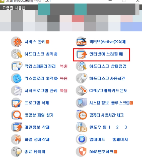 8. 고클린 실행되며 인터넷이 느려질 때 버튼을 누르면 끝