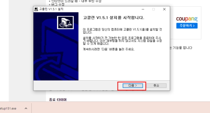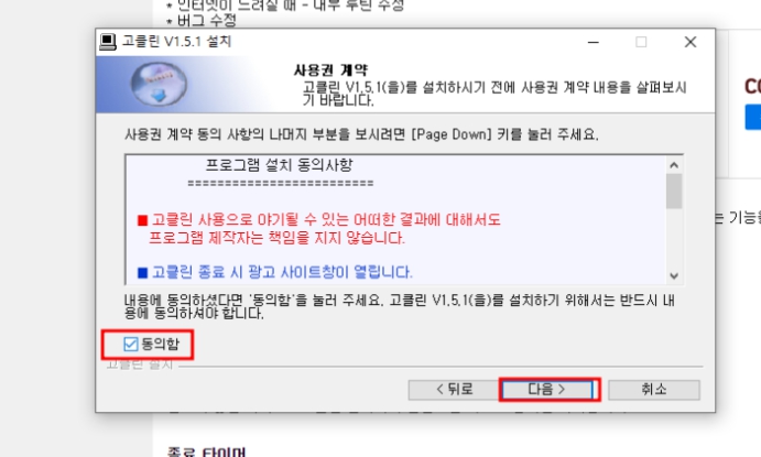 3. 고클린 설치 마법사가 나타나면 바로 다음 버튼 클릭하고 계속합니다