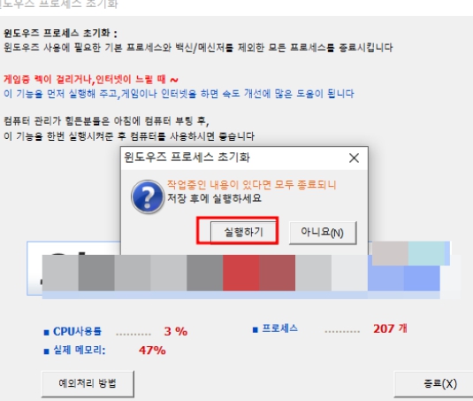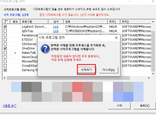 10. 실행이 완료되고 확인버튼을 누르면 느려졌던 컴퓨터 속도가 빠르다는 것을 느끼게 됩니다