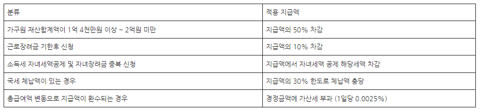 아래 표와 같지만 2023년부터는 단독가구는 최대 165만 원, 홑벌이 가구는 최대 285만 원, 맞벌이 가구는 최대 330만 원으로 지급액이 인상되었습니다