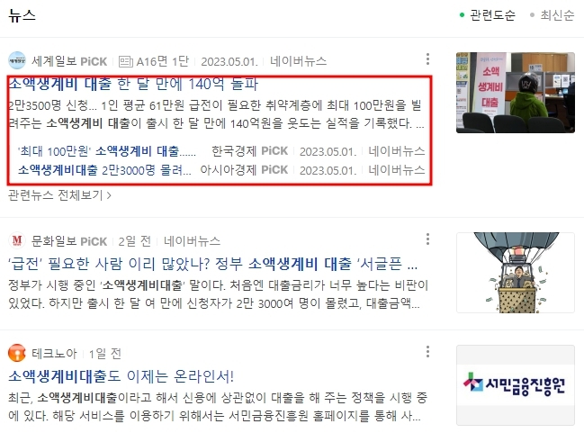 정부에서 소액생계비 대출이라고 긴급한 사정으로 인해 빌려준다는 것입니다