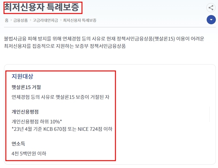 이 대출 또한 정부에서 어려운 최저신용자를 위해 지원하는 대출입니다